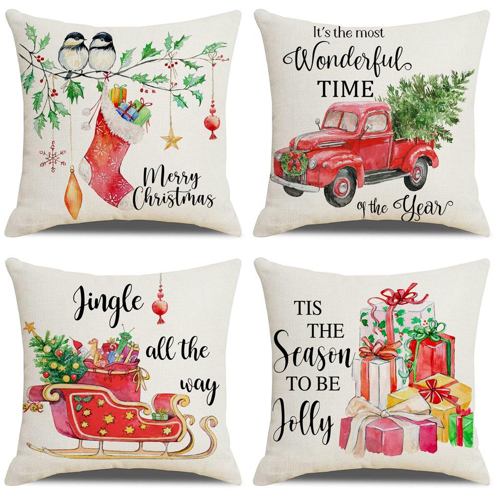 New Christmas Linen Pillow Cover Home Watercolor Style Simple Printed Bedside Pillow Cover
