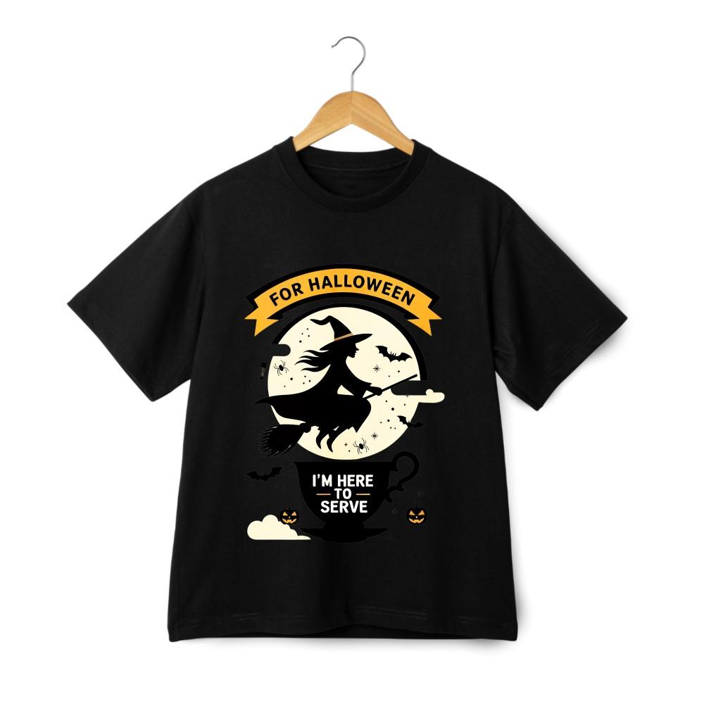 Halloween Witch Fun Cartoon Casual T-shirt| Black and White Options Available