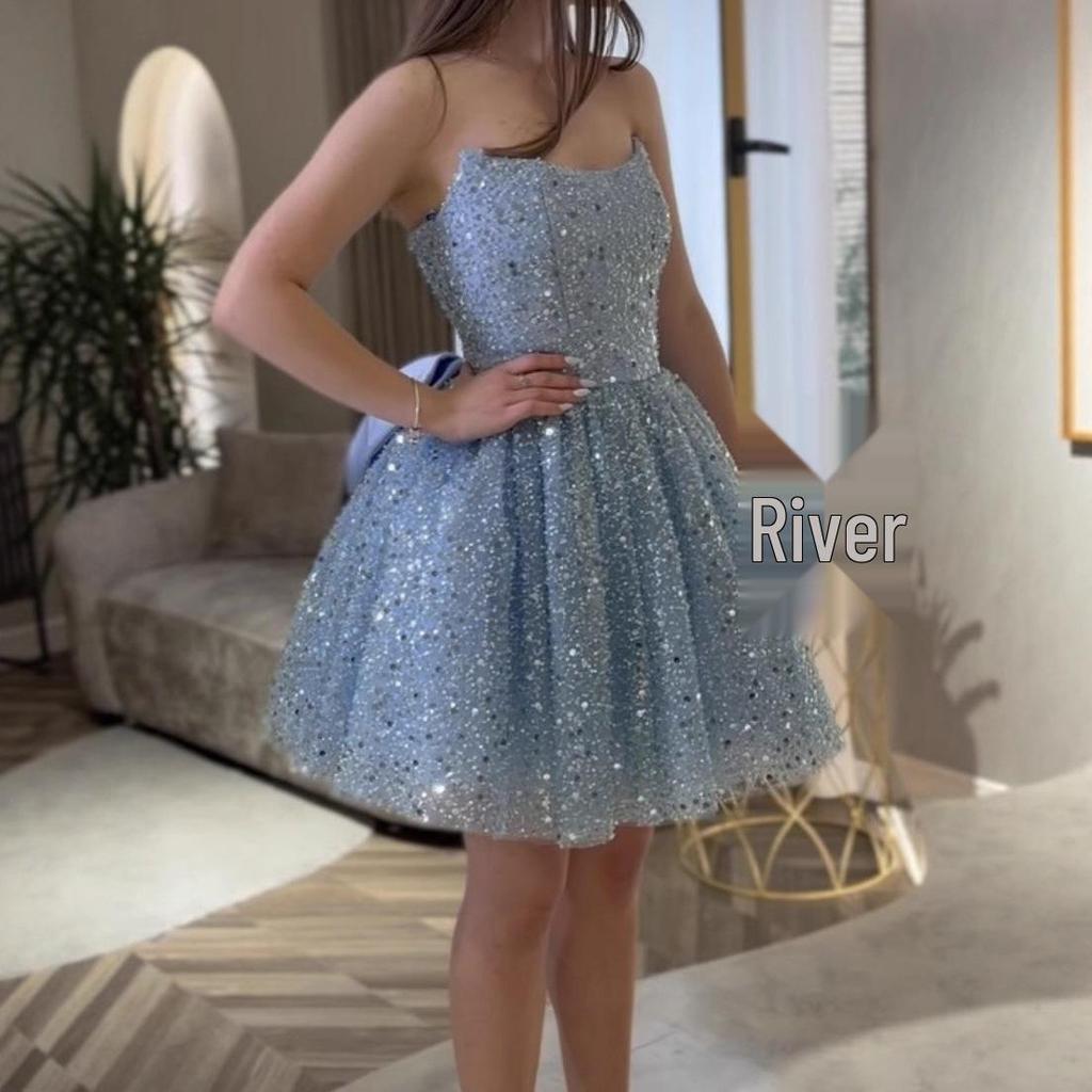 European and American Women's Off-the-Shoulder Sequin Bow Princess Dress