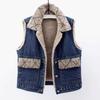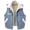 Autumn and Winter Lambswool Plus Velvet Thickened Patch Denim Vest Women's Loose Vest Waistcoat Jacket