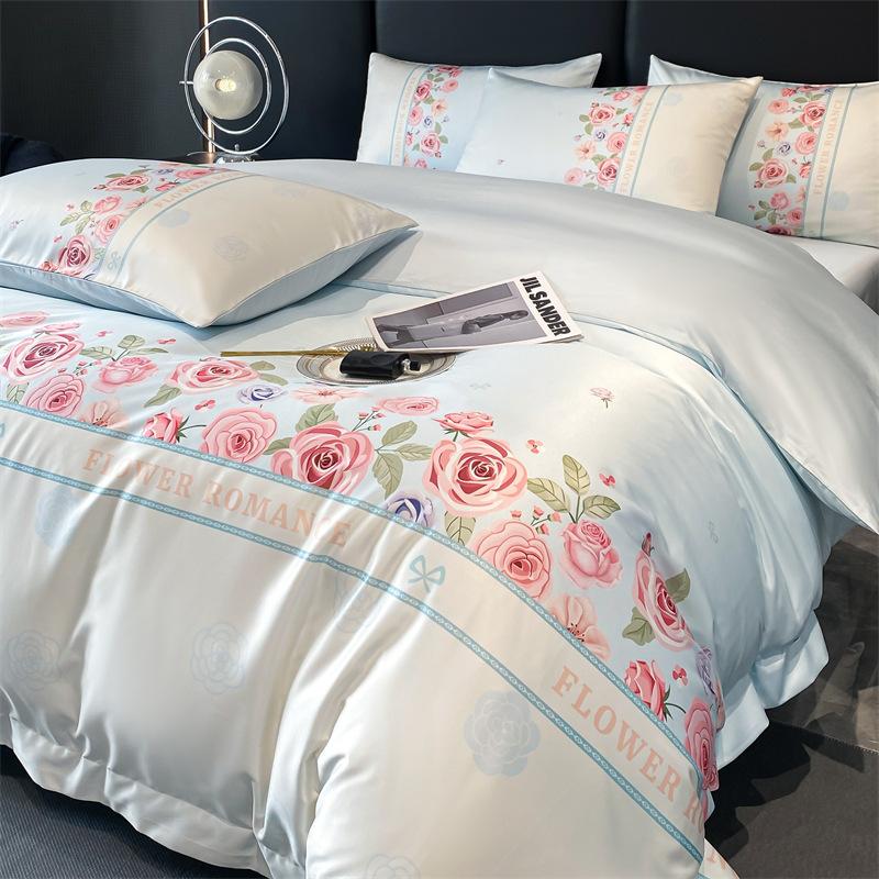 Premium A Silk Printing Bed Four-piece Set Light Luxury Comfortable Breathable Bed Sheet Quilt Cover Pillowcase