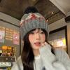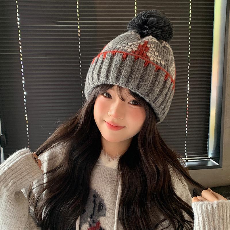 Versatile Knitted Hat Fur Ball To Keep Warm and Cold Proof Ear Protecting Head Covering Hat Women's Loose Small Woolen Hat Showing Face