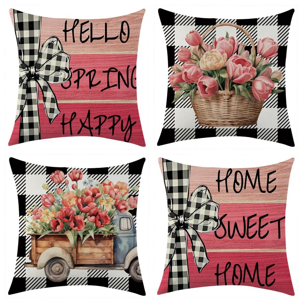 New Festive Decorative Linen Print Pillowcase, Car Sofa Lumbar Pillow Cushion