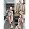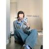 Lazy Contrasting Color Fake Two Pieces Retro Gray Sweater Women's Autumn Loose Design Niche Lo Shirt Top