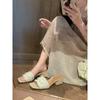 Spot Second Delivery! Grape Mother Same Shoes Jeju Island Trip Straw Flat Bottom Square Head Thick Heel Holiday One-word Slippers