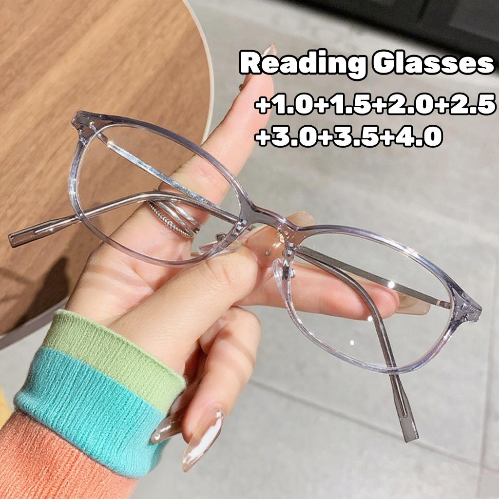 New Trendy Anti Blue Light Reading Glasses for Women Men Retro Fashion Ultralight Small Frame Far Sight Eyeglasses DiopterTo+4.0