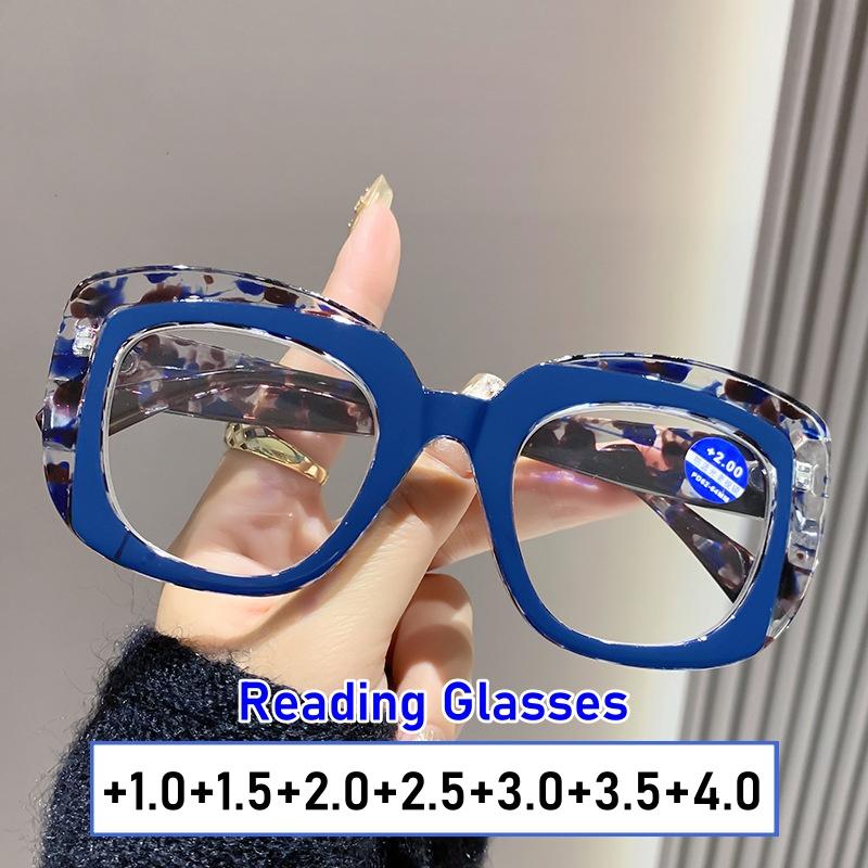 Women's Large Frame Reading Glasses Unisex Fashion Luxury Blue Light Blocking Hyperopia Trendy Round Oversized Far Sight Eyewear
