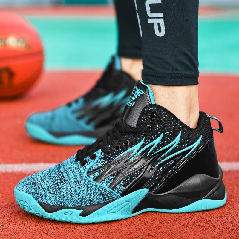 New Breathable Fly-woven Rubber Basketball Shoes, Casual High-top Teen Couple Non-slip Sneakers