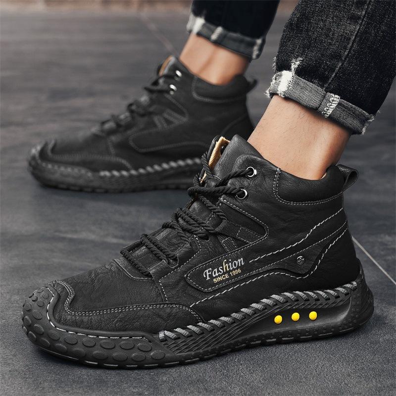 Large Size High-top Casual Leather Shoes Men's Non-slip Mountaineering Shoes Sewn Handmade Shoes Outdoor Casual Shoes