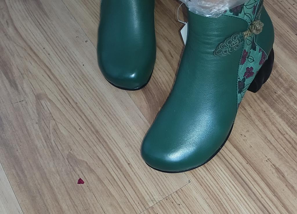GKTINOO Genuine Leather Ankle Boots 2025 Winter New Ethnic Printed Women's Boots Soft Soles Thick Heels Mother's Leather Boots