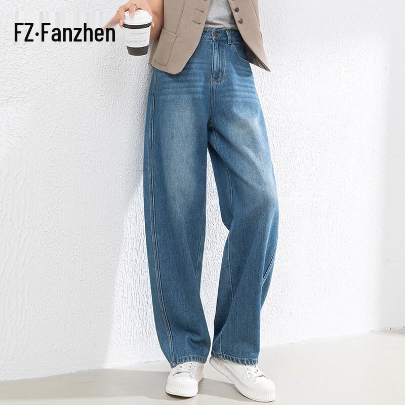Fanzhen Women's High-Waist Loose Wide-Leg Curved Jeans