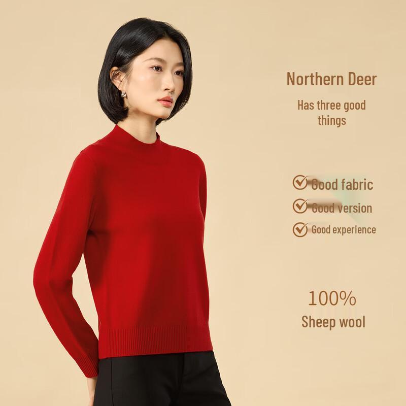 Northern Deer 100% Merino Wool Classic Mock Neck Pullover Sweater