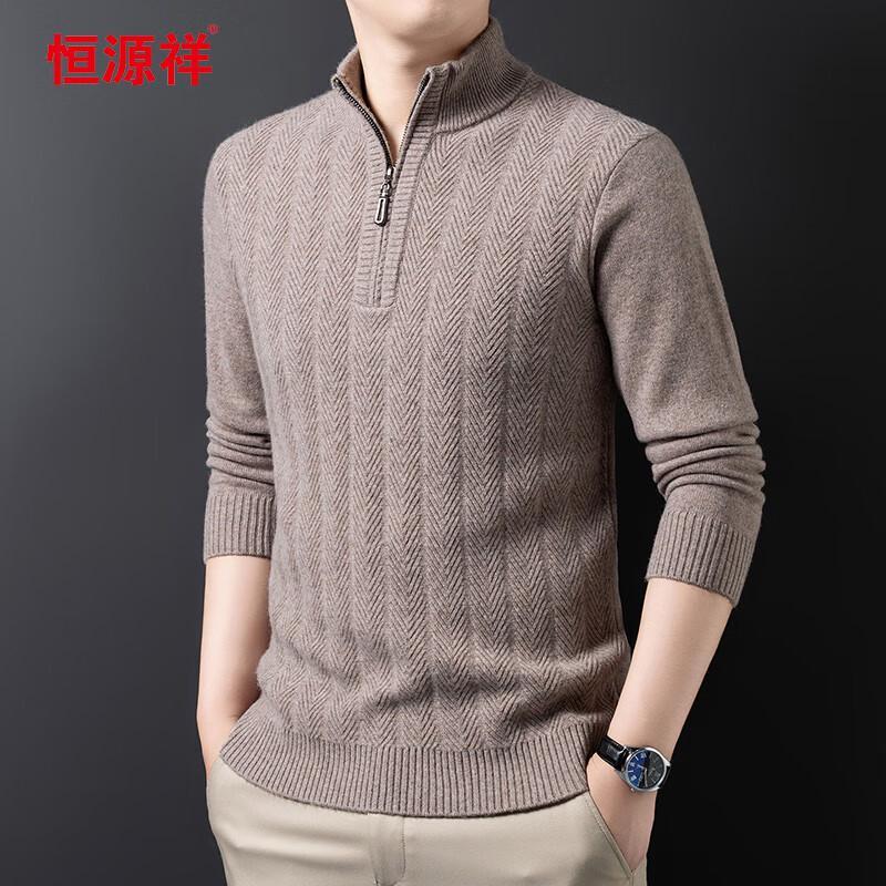 Hengyuanxiang Men's 100% Wool Half-Zip Pullover Sweater