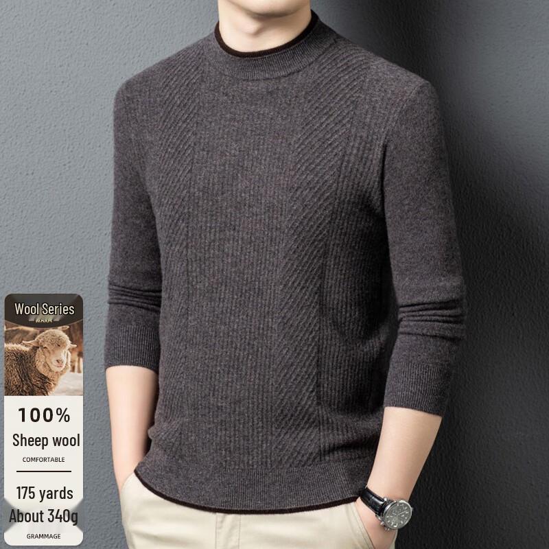 Fengxun Men's 100% Pure Wool Warm Round Neck Sweater FXT6603