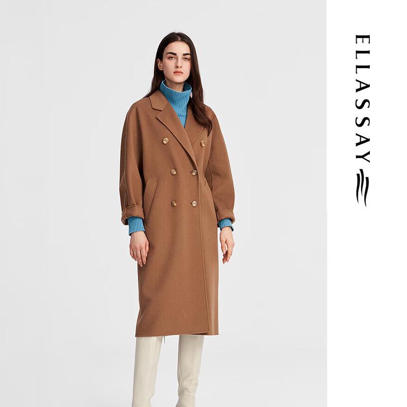 ELLASSAY Women's Merino Wool Double-Breasted Woolen Coat