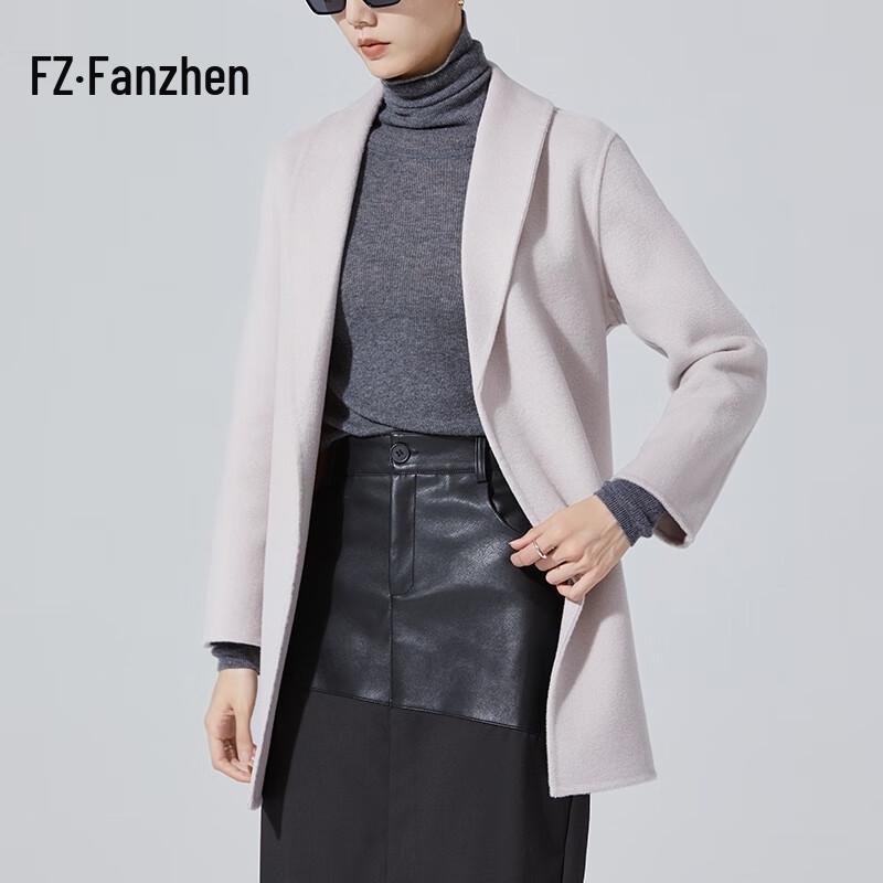 Fanzhen Women's 100% Wool Mid-Length Coat with Belt