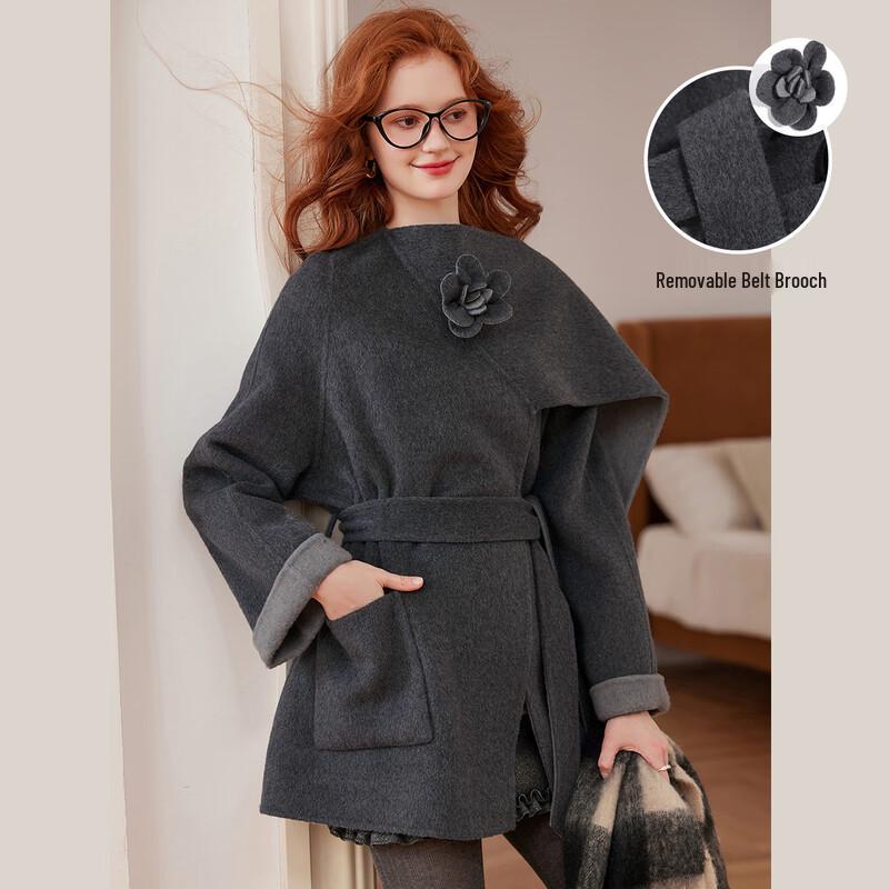 Bailuyu Women's Scarf Collar Wool Blend Coat