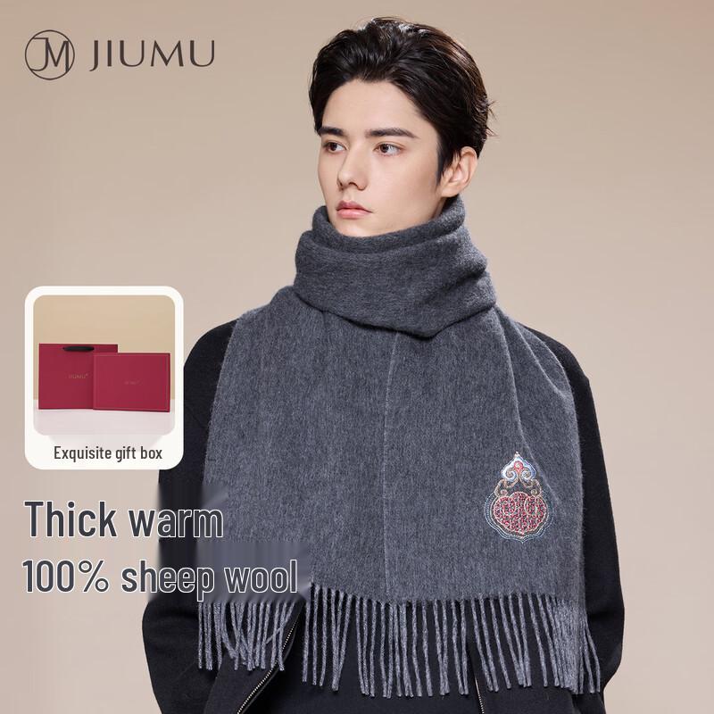 JIUMU Men's Pure Wool Chinese Style Scarf