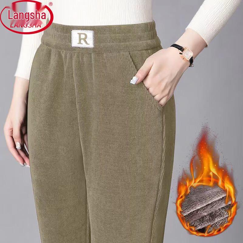 LANGSHA Women's Winter Plus-Velvet High-Waist Thermal Stirrup Harem Pants