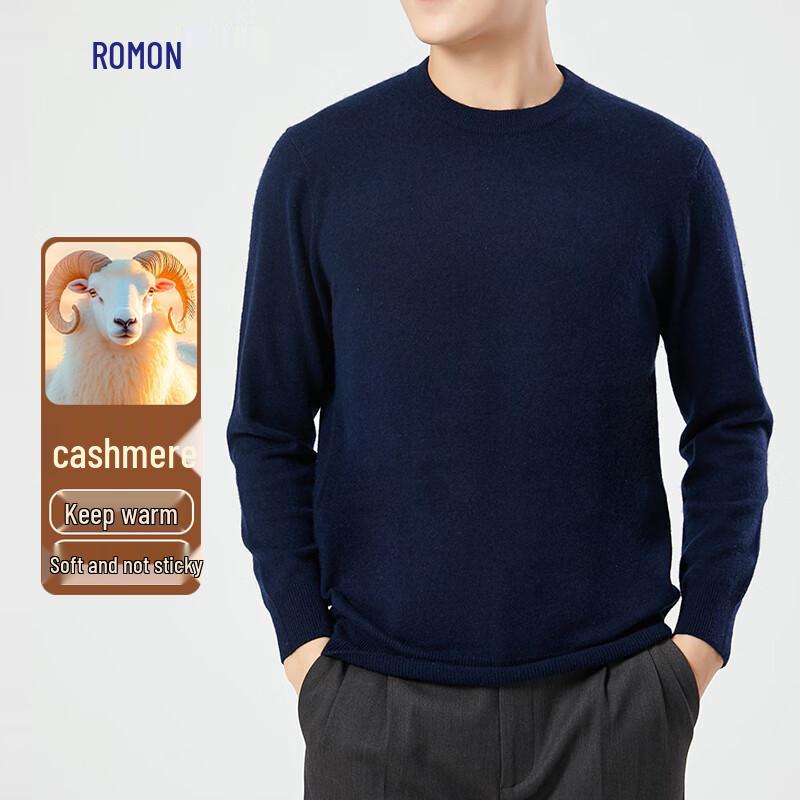 ROMON Men's Cashmere Blend Round Neck Pullover Sweater