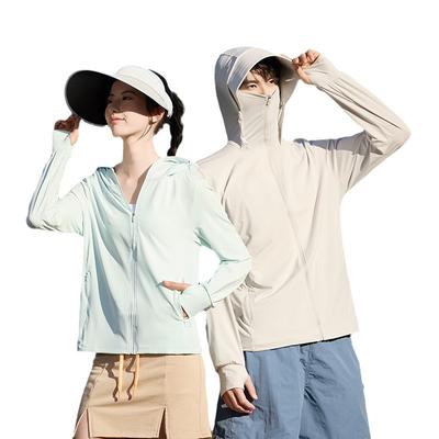 Sunscreen Clothing Jacket Men Women Hooded Long Sleeve Zipper Closure Ice Silk Outdoor UV Protection Coat
