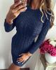 Trendy Cross-border Fashion Knitted Sweater Dress - Round Neck, Long Sleeve