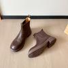 Vintage Round Head Coarse Heel Short Boots Women's Autumn and Winter Brown British Smoke Boots Chelsea Boots Black Platform Martin Boots