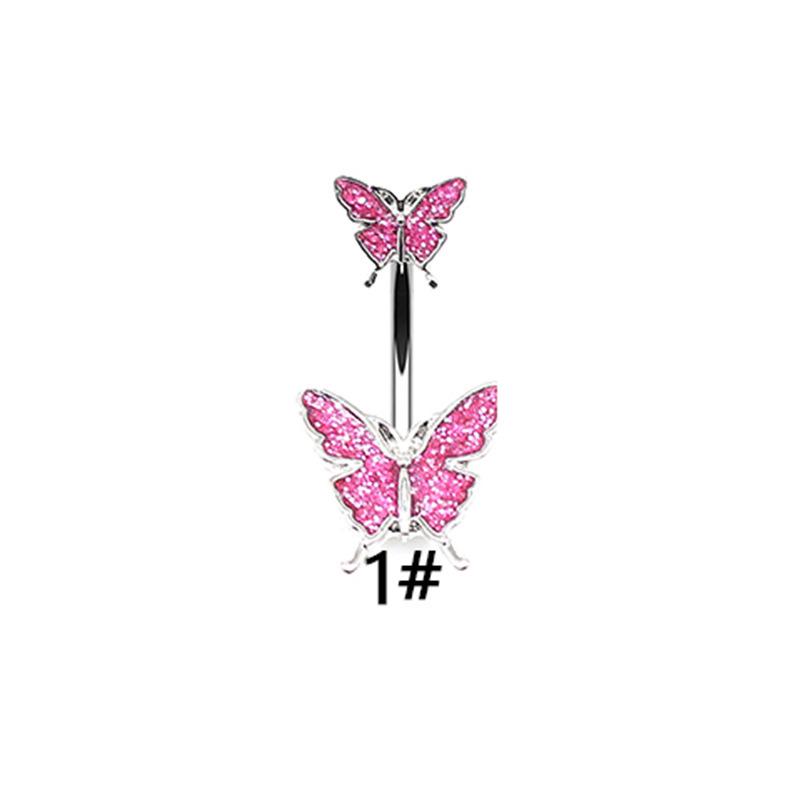Gatte Pink Butterfly Heart Rhinestone Zircon Rabbit Double Belly Button Ring