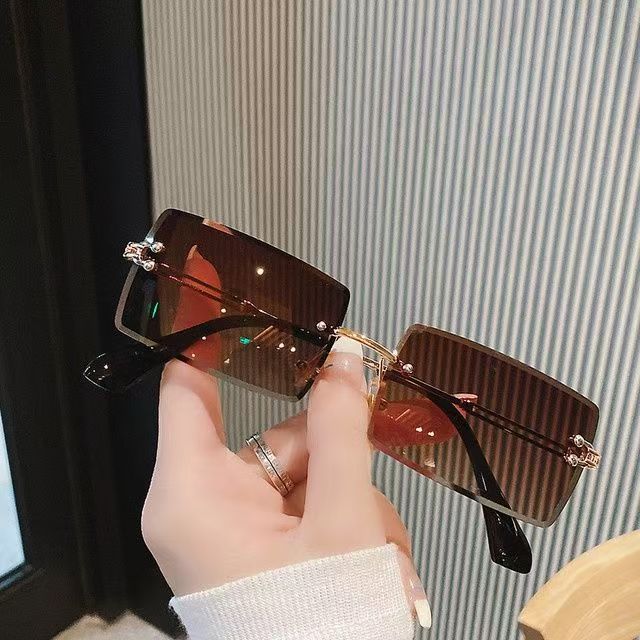 New Rimless Rectangle Vintage Metal Sunglasses Fashion Frameless Tinted Eyeglasses for Women Men UV400