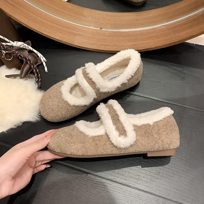 Mao Mao Shoes Winter Velvet Women's Shoes Wear Cotton Shoes To Keep Warm and Versatile Flat Shoes Fashionable Flip Hair Bean Shoes Maternity Shoes