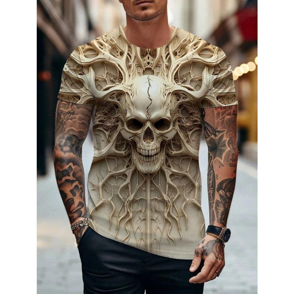 Summer Men's Skull Pattern 3D Printed Round Neck T-shirt with Short Sleeves