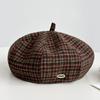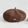 Retro Plaid Beret Women's Spring and Autumn Literary British Style Painter's Hat with Big Head Circumference and Face Small and Versatile Painter