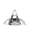 - **Structured Design Details**: Features a stylish micro tote bag silhouette with PU material, metallic finish, chain strap, and mini structured design. It supports versatile carrying options (shoulder, crossbody) with an adjustable 112cm strap. It exudes trendy and edgy charm, perfect for adding a bold touch to any outfit.
