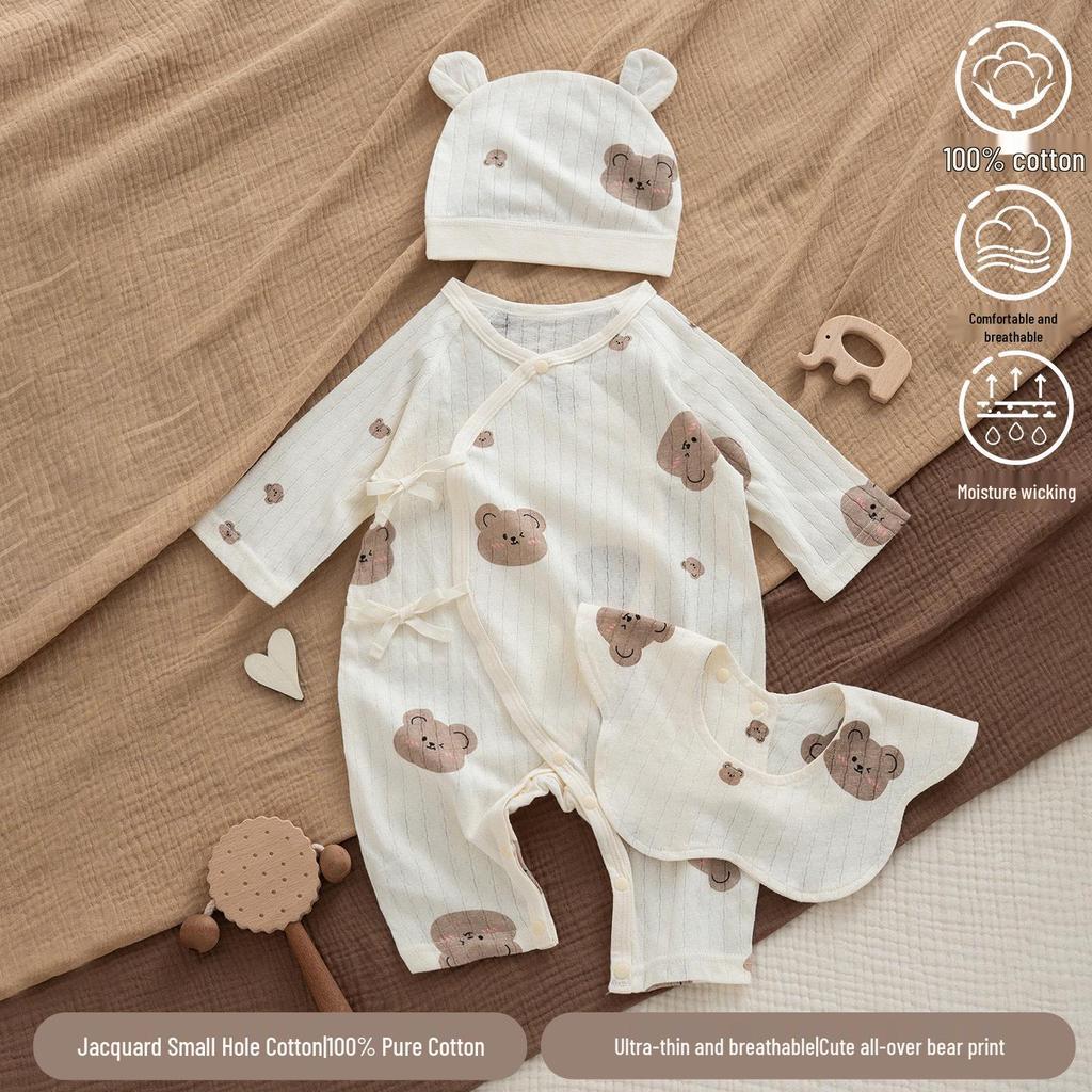 The Newborn Ultra-Thin Cotton Long-Sleeve Romper is designed with your baby's comfort in mind. Made from high-quality, breathable cotton, this romper is perfect for keeping your little one cool during the summer and cozy in air-conditioned spaces. The long sleeves provide gentle coverage, while the special belly protection feature ensures added warmth and security for your newborn. This A-Class romper is ideal for parents seeking a blend of style, comfort, and functionality for their baby's wardrobe.