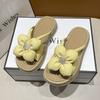 Wear Female Flower Slippers One Word Fairy Summer Fashion Cool Thick Bottom 2025 Summer New Rhinestone Muffin Slippers