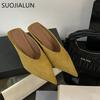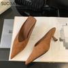 Fashion SUOJIALUN 2025 Autumn Women Slipper Fashion Pointed Toe Sahllow Slip On Mules Shoes Thin High Heel Outdoor Dress Sandal Pumps