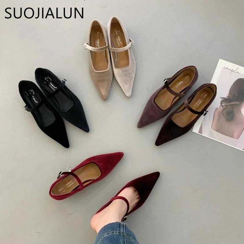 Fashion SUOJIALUN 2024 Autumn Women Flat Shoes Fashion Pointed Toe Ladies Elegant Mary Jane Shoes Soft Flat Heel Outdoor Drees Ballerina