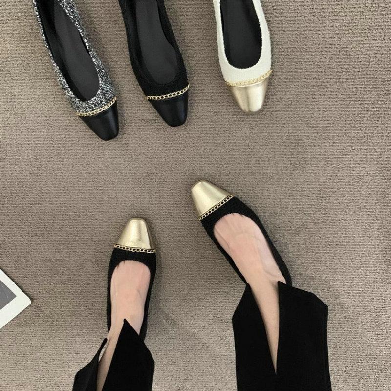 Fashion Flat Shoes for Women 2025 Spring and Autumn French Chain Fashion Boat Shoes Plus Size Women's Shoes 42 43 44 Loafers Women