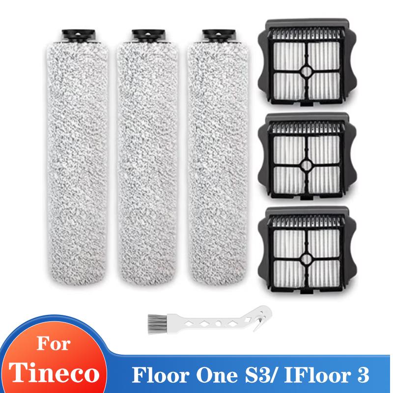 Replacement Roller Brush and Filter Kit Compatible for Tineco Floor One S3 and IFloor 3 Cordless Wet Dry Vacuum