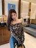Spicy Girl Leopard Print One-Shoulder Slim-Fit Long-Sleeve Top