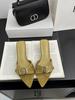 Fashion Thin Heels Beige Heeled Sandals Rivet Female Shoes Slippers Casual Pointed Toe Low Slides Black 2025 Luxury Flat High Soft Micro
