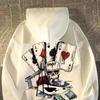 Autumn Men Pullover Hoodie Oversized Sweatshirt Fashion Loose Skeleton Poker Print Long Sleeve Couple Clothes