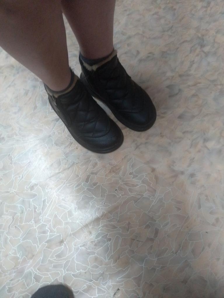 Quilted ankle boots with two zippers. Smooth sole. Artificial fur inside. Insole is removable. Lightweight, warm. I don't know if they will get wet. Good for a wide foot. For a 23.5cm foot, I bought size 38 and didn't go wrong.