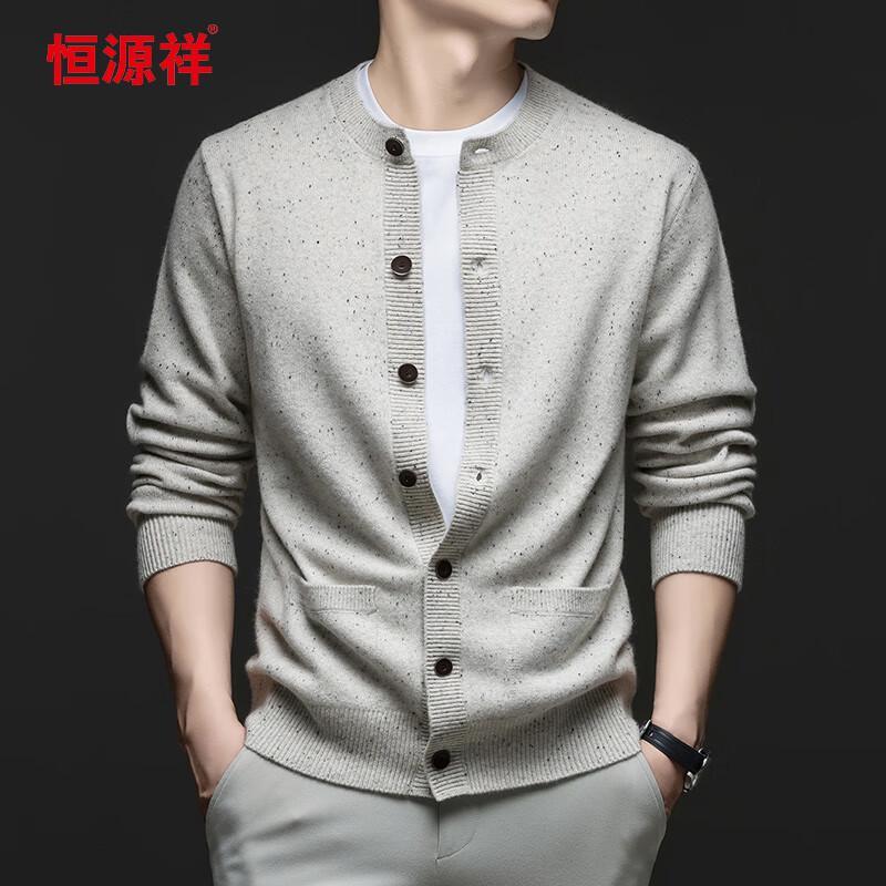 Hengyuanxiang Men's 100% Cashmere Thickened Cardigan Sweater