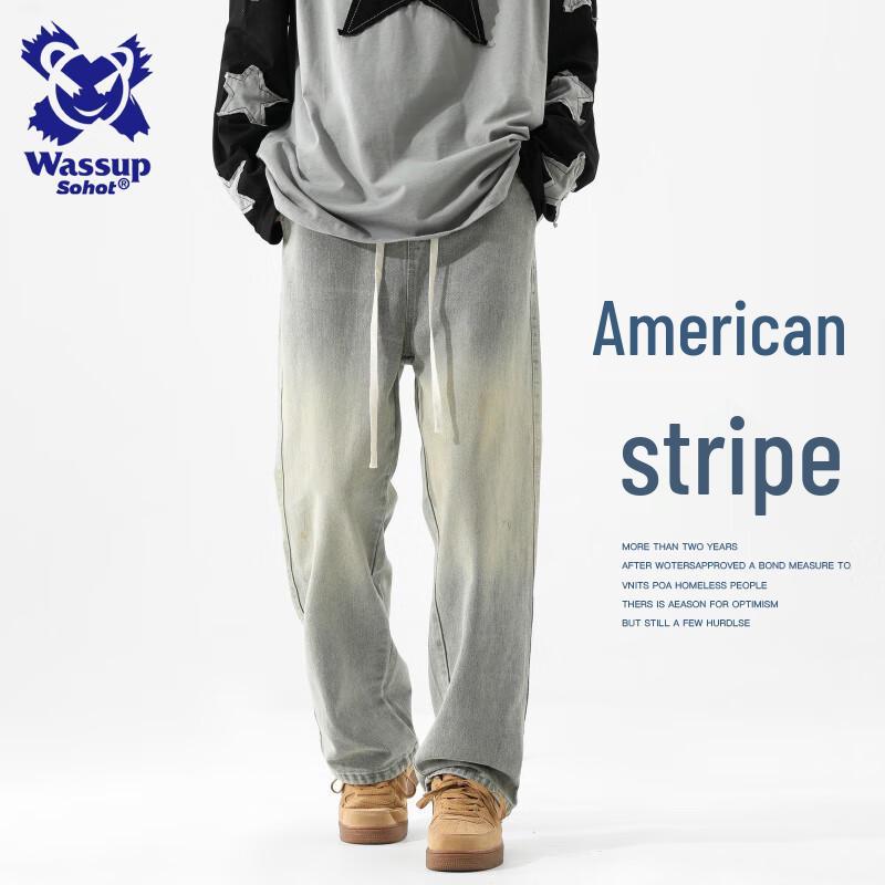 Wassup Sohot Men's Loose Wide-Leg Straight Denim Jeans