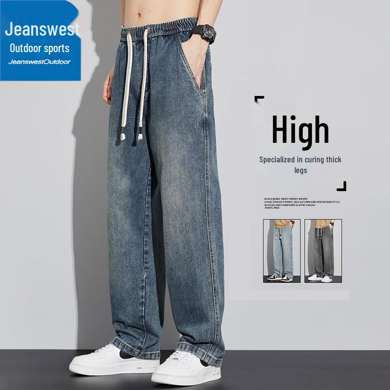 Jeanswest Men's Straight Loose Fit Outdoor Casual Denim Jeans