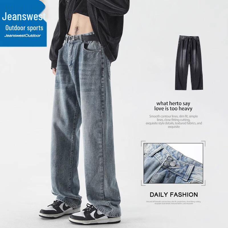 Jeanswest Men's American Retro Straight Wide-Leg Denim Jeans