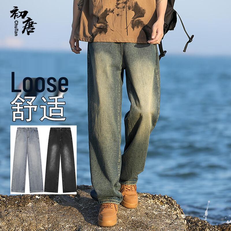 Men's Retro Loose Straight Wide-Leg Washed Denim Jeans