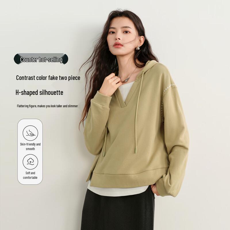 Elva' Island Women's Faux Two-Piece Hooded Sweatshirt