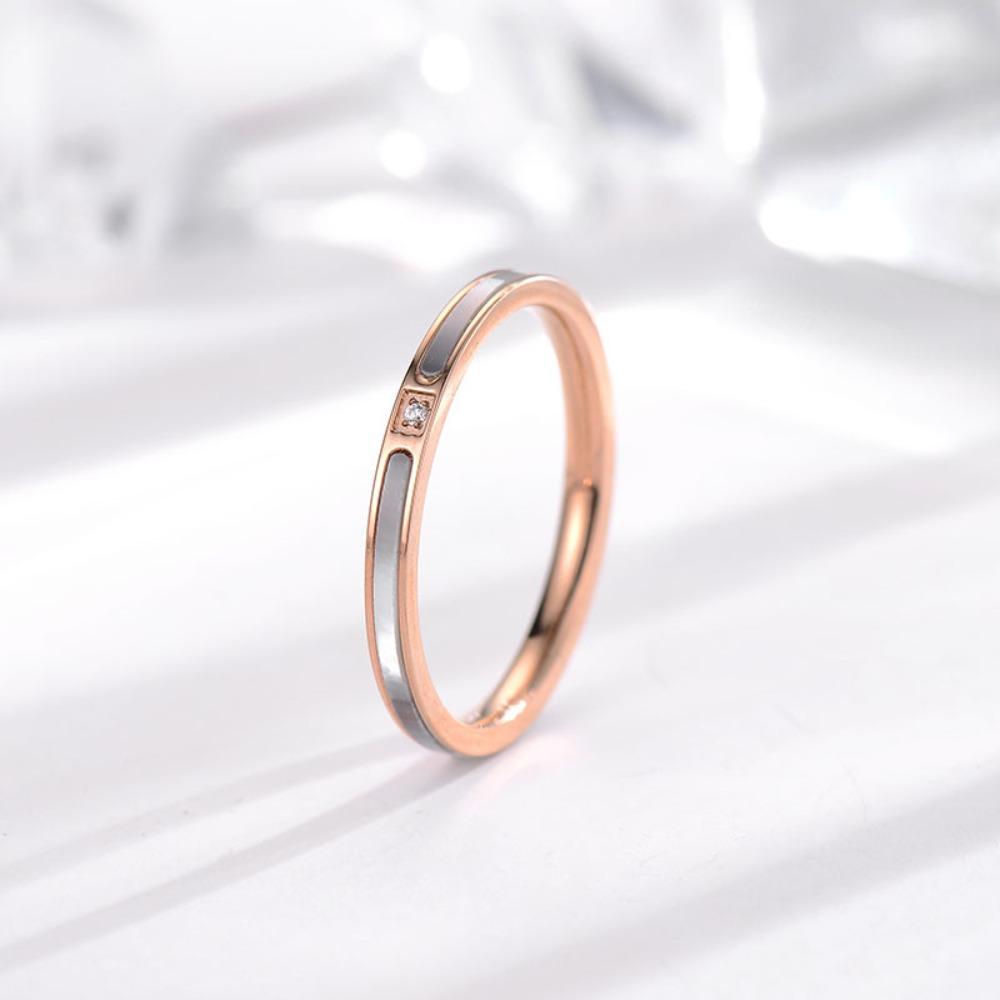 Elegant 18k Rose Gold Titanium Steel Ring for Women with Single Diamond White Shell Simple Tail Ring Jewelry